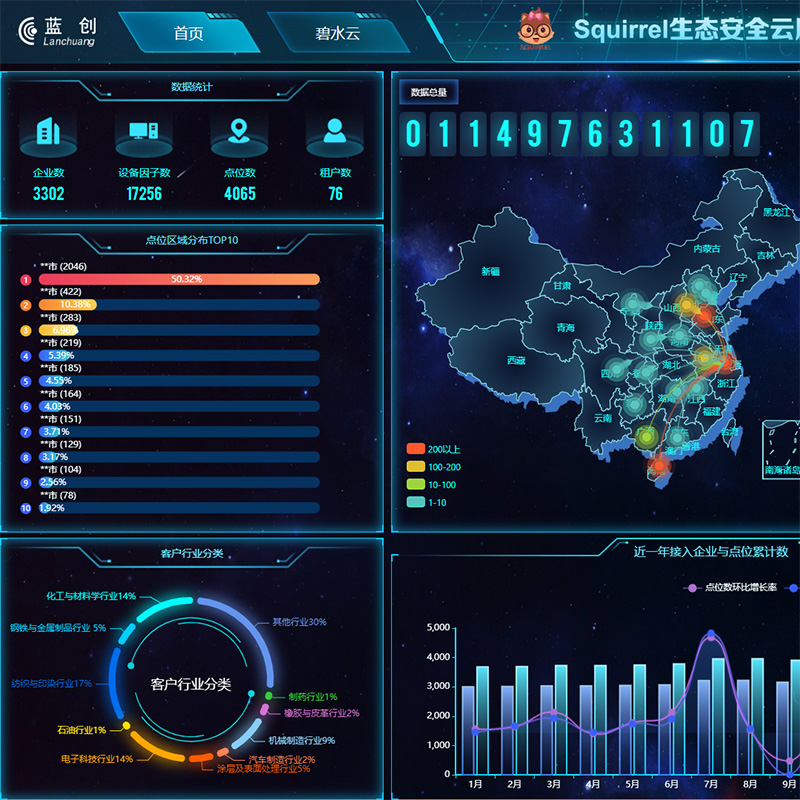 餐飲油煙在線監(jiān)控、柴油車OBD遠(yuǎn)程在線監(jiān)控、企業(yè)安全生產(chǎn)信息化等系統(tǒng)于一體,通過AI數(shù)據(jù)模型對(duì)海量生態(tài)安全數(shù)據(jù)進(jìn)行挖掘,為生態(tài)環(huán)境監(jiān)管部門、應(yīng)急管理部門、